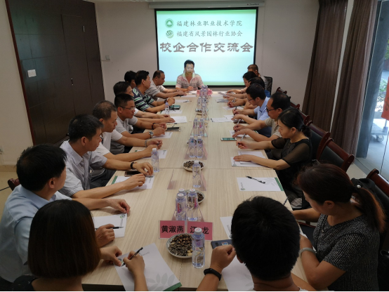 本网讯 7月23日至24日,福建林业职业技术学院副院长叶世森等一行10人与福建省风景园林行业协会于福州召开校企合作交流会。福建林业职业技术学院副院长叶世森,科研开发处处长余荣卓,园林系主任黄勤坚,园林系副主任黄云玲,园林系教研室主任唐必成、危静美,园林系教师兼教学秘书陈剑峰,园林系教师陆梅、黄淑燕、江龙,福建省风景园林行业协会监事长杨永进,常务副会长林云、薛希杰,副会长陈伟,福建省长希园林建设工程有限公司总经理万熙明,福建四维林景生态工程设计院有限责任公司总经理卢镜铭,福建省源林园艺景观工程有限公司总经理林杰,福建三叶园林绿化工程有限公司总经理郑炎平,厅级老领导方彦富,福建省花卉协会常务副会长兼秘书长彭盛易出席了本次会议。会议由福建省风景园林行业协会秘书长郑力鸿主持。