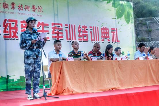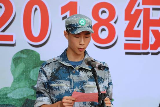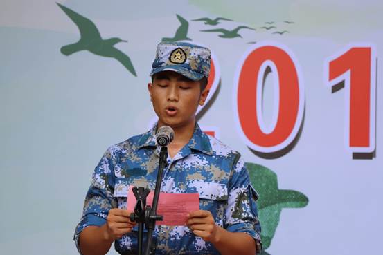 学院退伍军人方锽滨和乐泽淅作为教官代表发言。对全体新生提出希望,希望他们在以后的学习生活中要学会珍惜,学会感恩,学会自省,用自己的青春热血和聪明才智为“人人皆可成才”而努力奋斗。