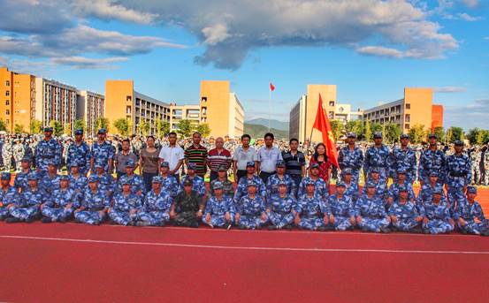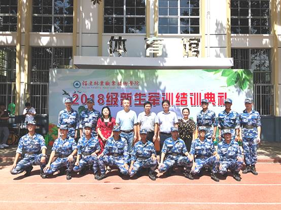 最后,学院党委书记徐志荣代表学院讲话,他首先向全体教官表示诚挚的感谢,高度赞扬了在面对高温闷热的受训环境所展现出吃苦耐劳、奋勇争先良好精神风貌的全体参训学生,并提出三点希望:一是希望大家发扬爱国主义与集体主义精神,二是希望大家保持在军营所学习到的优良习惯,三是希望大家保持积极昂扬的精神面貌,展现林职院学子蓬勃向上的青年风采。然后与军训教官亲和友好合影留念。