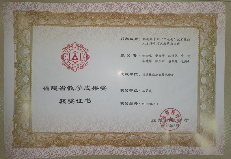 福建省职业教育教学成果奖是我省职业教育教学研究与改革的最高级别奖项,是对我省职业教育人才培养、教学建设和教学改革成果的检阅和展示。本次职业教育教学成果奖的获得,是学院近年来创新人才培养模式、深化教育教学改革、开展文化育人等集中展示。学院将充分发挥教学成果的引领激励作用,引导教师潜心研究教学,进一步深化教育教学改革,全面提升人才培养质量,为服务经济社会发展培养优秀的技术技能人才作贡献。