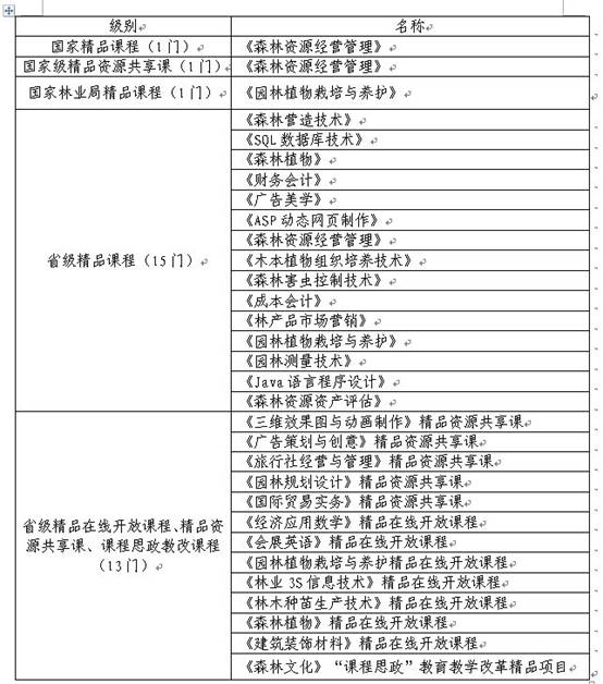 长期以来,学院一直努力营造人人皆可成才,人人尽展其才的良好氛围,以培养高素质技术技能型人才为办学使命,高度重视课程建设。据悉,目前学院建有国家级精品课程1门,国家级精品资源共享课1门,国家林业与草原局精品课程1门,省级精品课程15门,省级精品在线开放课程、精品资源共享课、课程思政教改课程13门,近三年共立项院级在线精品课程120多门,学院投入大量资金建设校园免费WiFi,搭建了立体的课程教育平台,形成线上线下、课内课外、师生互动、资源共享的良好教学育人环境,提升学生课程学习的参与度与获得感。