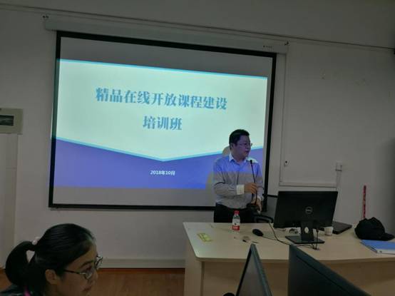 本网讯 10月20日,学院在天麟校区实训大楼510室举办了“精品在线开放课程”建设培训班。来自2016、2017、2018省级和院级精品在线开放课程建设课程立项的团队成员以及其它有兴趣的教师90余人参加了此次培训。本次培训班邀请了在慕课、微课制作和信息化教学大赛实战与指导方面有着丰富经验的阚宝朋副教授授课。阚老师就在线开放课程的特点、建设流程、国家级精品在线开放课程申报要点、在线课程建设平台和课程建设软、硬件的使用等方面进行分析、解读、指导与现场演示。同时还与大家分享了形式多样的优秀课程制作案例。此次培训班不仅使参训教师对在精品在线开放课程建设有更深层次的认识,而且启发了课程建设思路,推动了学院在线课程建设。