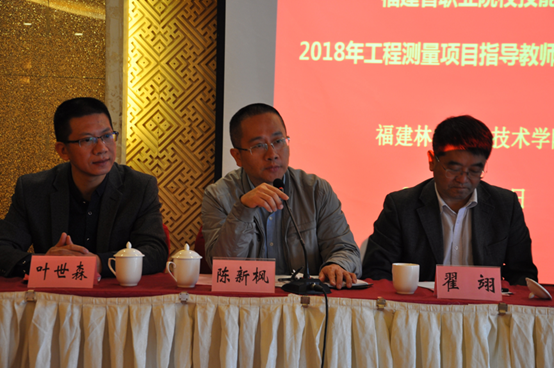 其次,省职教中心办公室主任陈新枫表示:感谢福建林业职业技术学院、远到而来的专家以及国赛设备企业对本次培训班的大力支持,并就培训班提三点要求:第一,要严格遵守培训纪律,做到不迟到,不早退,不无故缺勤;第二,要端正学习态度,本着学员姿态,尊敬老师,勤奋好学,不仅要向专家求教,更要加强学员间的交流学习,认真做好学习笔记;第三,要学以致用,本次两天半的培训既有理论讲座,又有实训实操,希望大家学有所获,提升自己专业技能,更希望在将来指导学生技能学习方面取得更好成效,为我省《工程测量》赛项参加省赛、国赛培养优秀选手,并预祝本次培训班圆满成功!