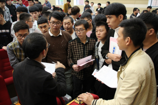 宣讲会结束后,应聘者们根据自己的志向,填写简历表,积极地与招聘负责人交流,面对同学们热情的提问,负责人耐心地回答,最终应聘者们满怀信心地投出了自己的简历。