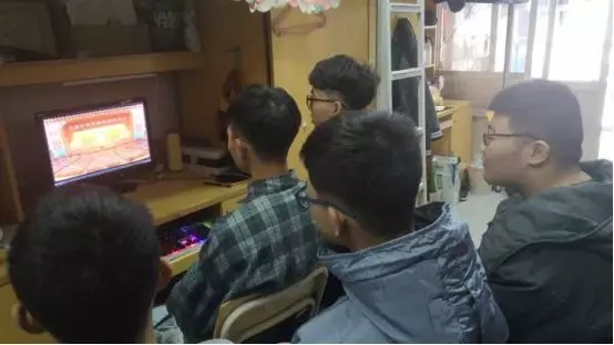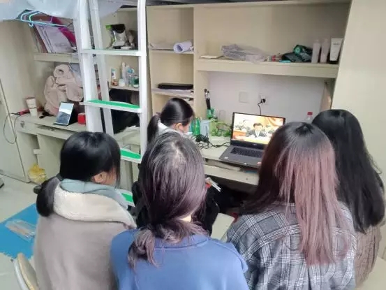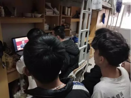 ▲建筑工程系、艺术设计系、自动化工程系组织学生在宿舍集体观看直播