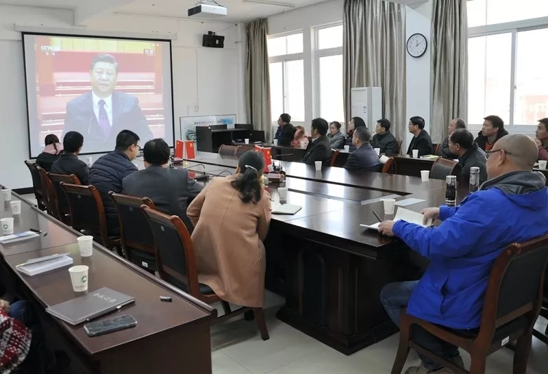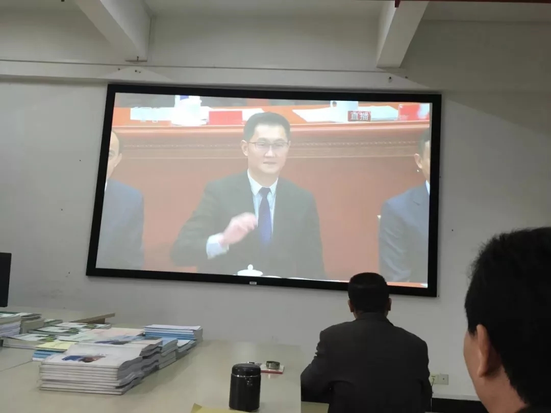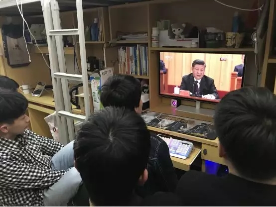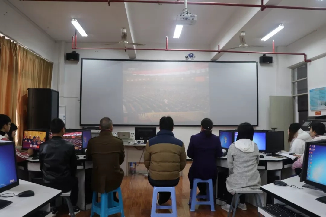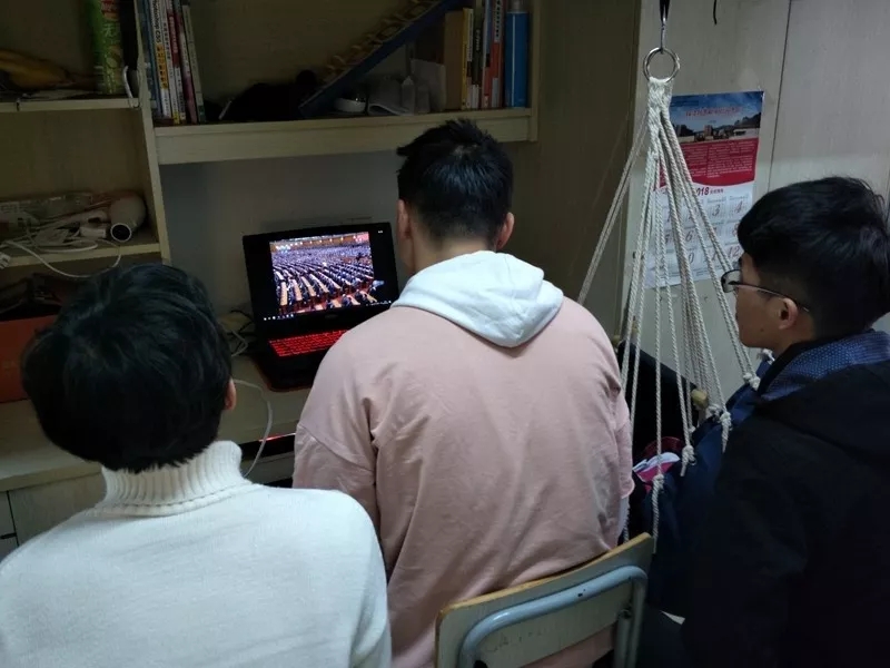 院领导、全体行政工作人员在江南校区办公楼第一会议室集体观看直播,各系组织师生在各系党建活动室、学生宿舍集体观看直播。我们如同就在人民大会堂会场一般,当庄严的国歌昂扬响起,抚今追昔,回顾改革开放40周年中国腾飞的历程,内心感到无比的骄傲、自豪。