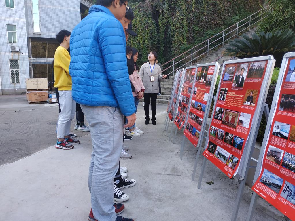 活动中,同学们认真观看展图,仔细阅读了展览内容。廖春华书记向同学一一介绍展览的内容,使同学们更加深刻地了解到改革开放40年以来中国的巨大变化。