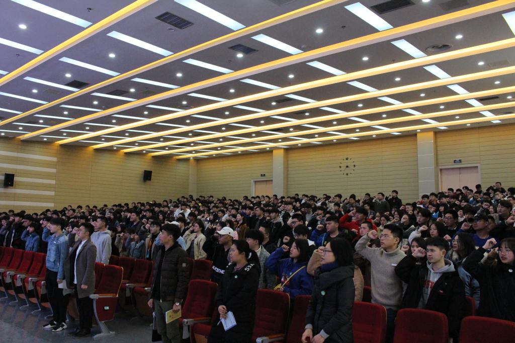 大会第五项议程由全体学生干部进行宣誓,团委副书记(学生)汤文浩同学领誓。