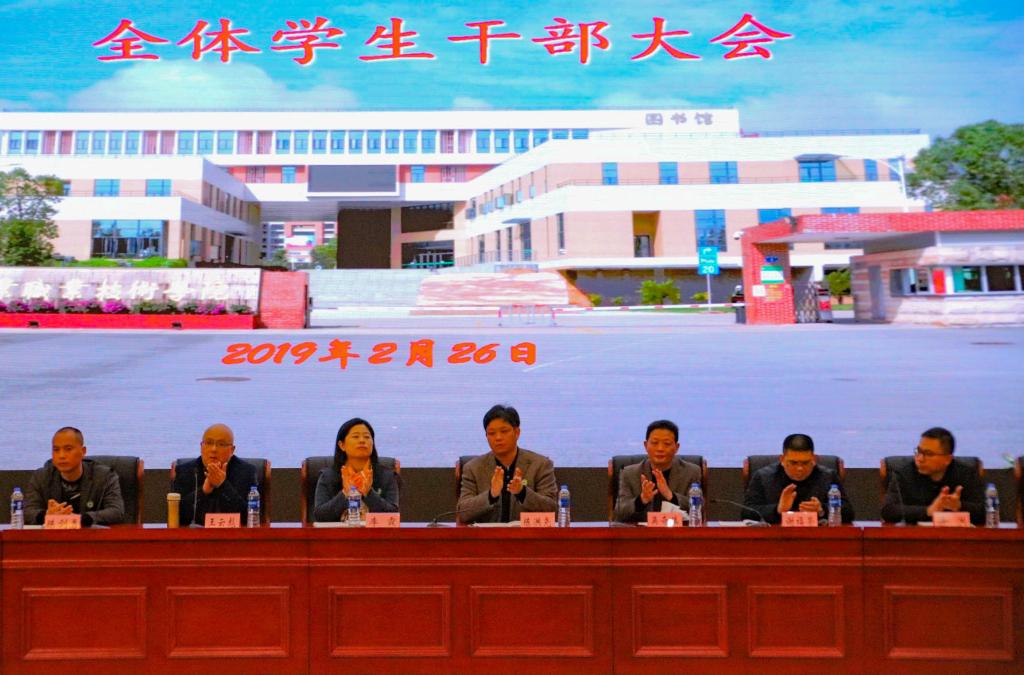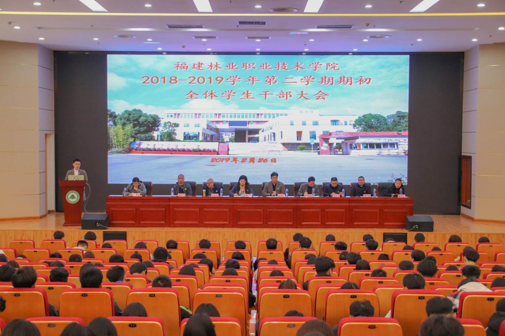 本网讯 2019年2月26日下午,我院2018-2019学年第二学期期初学生干部大会在江南校区图书馆报告厅隆重召开。院党委副书记陈洪尧,学生处处长、团委副书记李霞,学生处副处长、团委办公室主任陈友益,各系学工组组长、团总支负责人,学生处、团委全体工作人员及全院学生干部近500人出席本次大会,大会由团委黄晓宁老师主持。