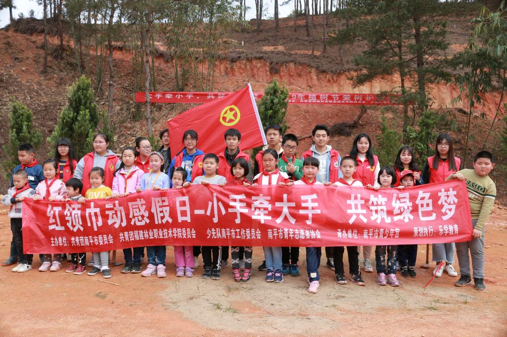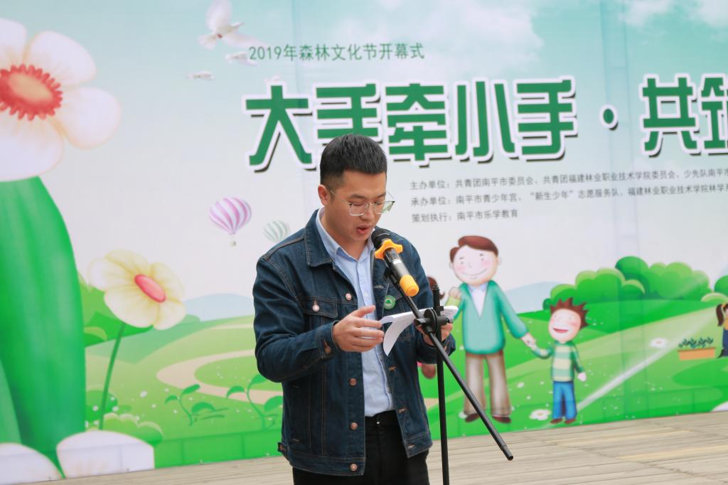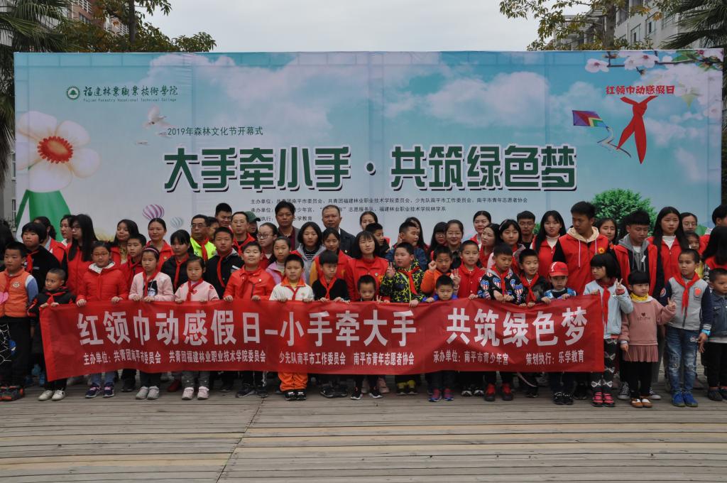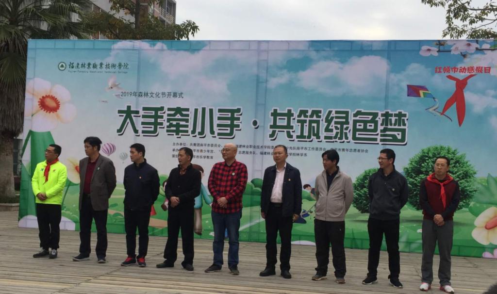 本网讯 三月春风暖人心,植树添绿正当时。正值第41个植树节之际,由共青团南平市委员会、共青团福建林业职业技术学院委员会、少先队南平市工作委员会、南平市青年志愿者协会等多家单位共同举办的“大手牵小手 共筑绿色梦”2019年南平市青少年亲子植树活动在福建林业职业技术学院举办。福建林职院党委书记万泉,院党委副书记、院长刘文开,南平团市委书记谷国海等主办单位党政领导,65个社会招募家庭及500多名师生共同出席植树节启动仪式。仪式由福建林职院学生处副处长陈友益主持。