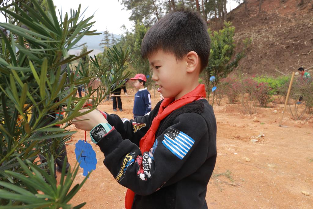少先队代表官添尧同学发言。官添尧同学代表全体少先队员郑重承诺:亲手种下一颗小树,携手创造一片森林,呵护我们美丽的家园。