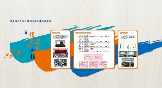 完成系统集成,消除信息孤岛,实现管理信息化。新建虚拟仿真实训室5间、数字化技能教室10间、远程协作教室3间,开展信息化环境下的实践教学和技能训练,2018年教师信息化大赛荣获国家三等奖1次,福建省一等奖1次,二等奖2次,三等奖3次。使用学院在线教育平台学生数5137人,占学生总数68.5%,在线学习32.6万人次,5,321人选修智慧树、超星尔雅35门网络课程。