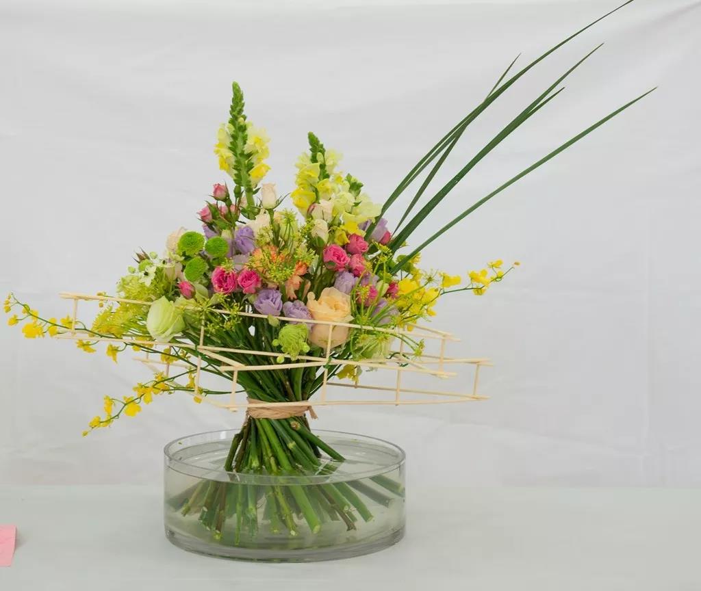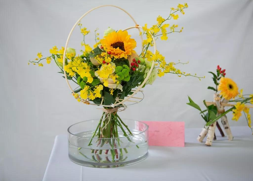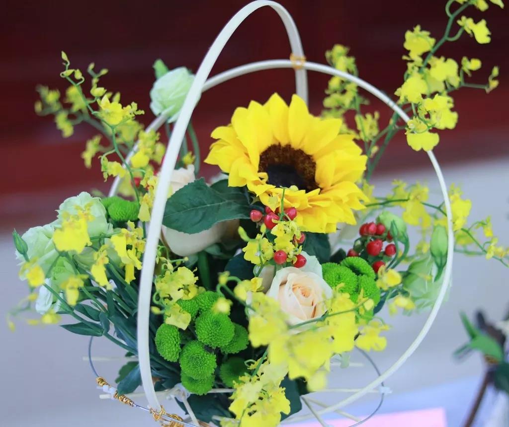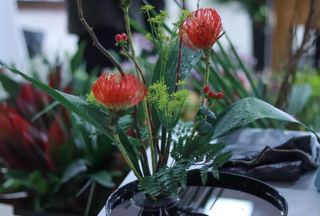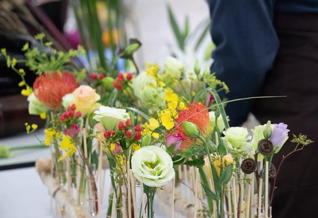 各位选手都表现出了自己的特色,作风风格迥异多样,或华丽奔放,或格调高雅,或清新怡人。经过参赛选手们的精心制作,一件件鲜艳夺目、创意精巧的艺术插花作品呈现出来,同时选手们就插花作品的设计理念、花卉搭配、以及蕴含的意义用小卡片作了详细的介绍,给大家带来强烈的视觉冲击和美的享受。