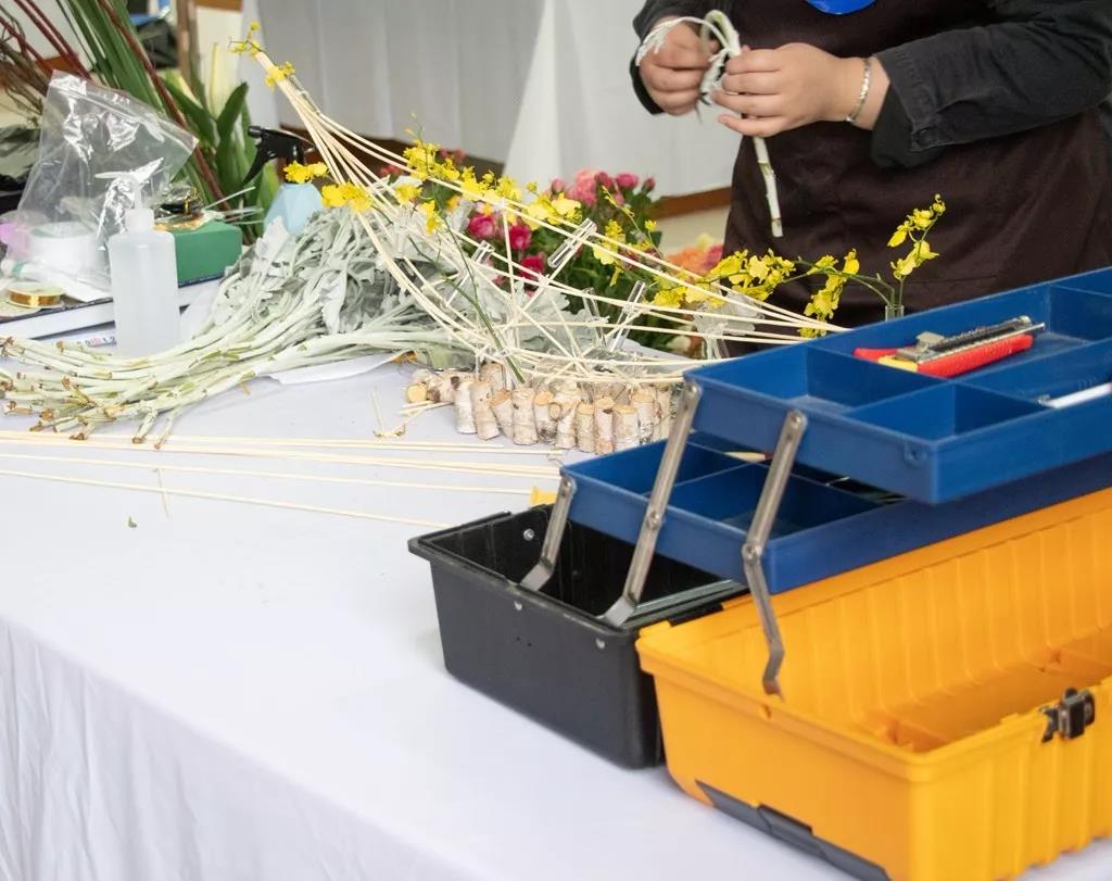 本赛项包含现代花艺作品创作和中国传统插花作品创作两个方面竞赛内容。考核内容涵盖插花艺术风格、花型结构、造型设计、色彩配置、花材整理与加工、花材保鲜等知识与技能。选手在现代花艺创作比赛中,从花束设计与制作、花首饰设计与制作、物件装饰、桌花设计与制作四个项目中现场抽取2项;在中国传统插花创作比赛中,从盘花作品创作、瓶花作品创作、简花作品创作、碗花作品创作四个项目中现场抽取2项,现场进行花艺作品制作。