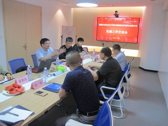 崔书记就晨曦信息科技有限公司党支部建设基本情况进行了专题介绍,并表示将努力探索将公司党支部和学院顶岗实习学生福州片区临时党支部深度融合,一起开展党建活动,加强党的建设。