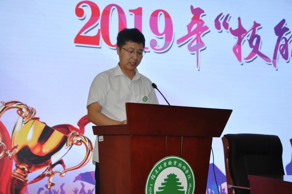 开幕式第四项由院学生处处长、团委副书记李霞老师宣读2019年度“技能文化活动月”竞赛项目名单。