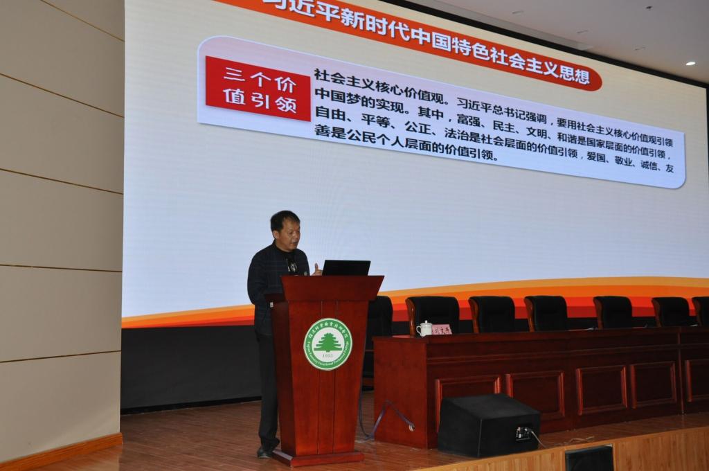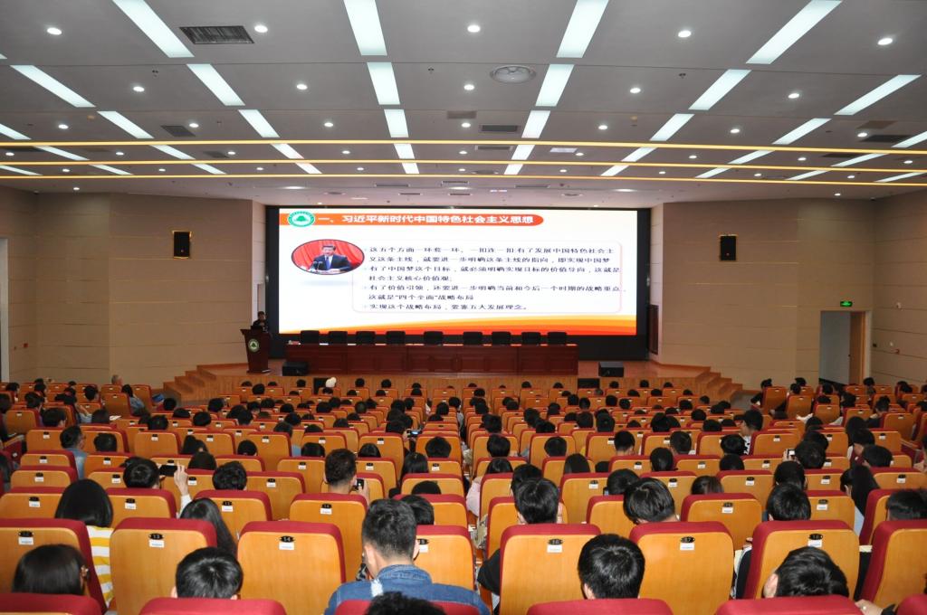 本网讯 5月7日晚院党委副书记、院长刘文开教授在江南校区图书馆学术报告厅作了题为“深刻领会习近平新时代中国特色社会主义思想,争做走在新时代前列的新青年”的专题讲座。第54期学生入党积极分子、习近平新时代中国特色社会主义思想读书社成员和思政部教师等300余人参加了报告会。 刘文开院长以对习近平新时代中国特色社会主义思想的认识入手,从“一条主线”、“两个百年目标”、“三个价值引领”、“四个全面”战略布局、“五大发展理念”五个方面深入阐述了习近平新时代中国特色社会主义思想的理论精髓;就如何争做走在新时代前列的新青年,刘文开院长要求同学们要正确认识时代、要学会认识自己、要明确成长因素,希望同学们要把握成长机遇、主动参与实践、完善个性修养、懂得反思自我和培养良好心态,要牢记幸福都是奋斗出来的。