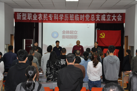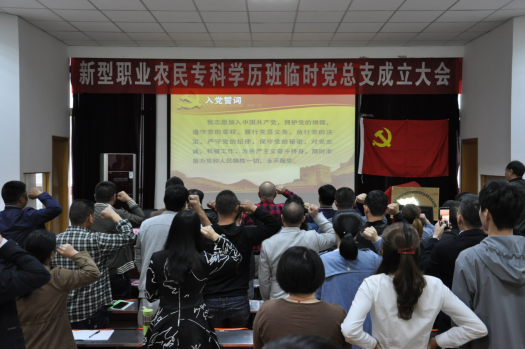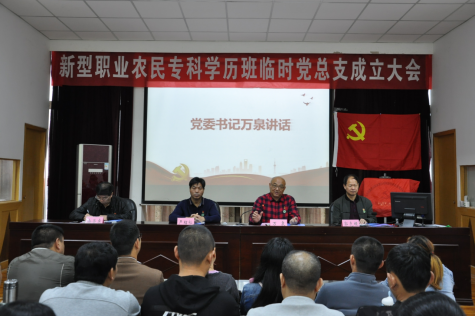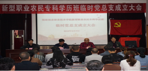 本网讯 为使学院新型职业农民专科学历班的新型职业农民党员在离村到校脱产学习期间也能过组织生活,同时能从严管理、教育学员,在培训中发挥党组织和党员作用,5月7日上午,学院新型职业农民专科学历班临时党总支成立大会在天麟校区综合楼七楼多媒体会议室隆重召开。学院党委书记万泉、副院长严绍裕、党委工作部部长郭先根、继续教育中心主任余荣卓,新型职业农民专科学历班临时党总支委员及2019级林业技术1913班全体党员及其他学员共同出席了本次临时党总支成立大会暨揭牌仪式。大会由郭先根部长主持。