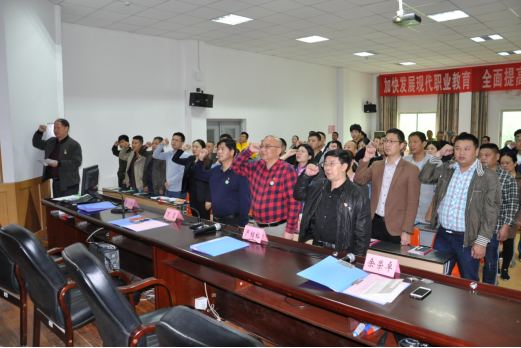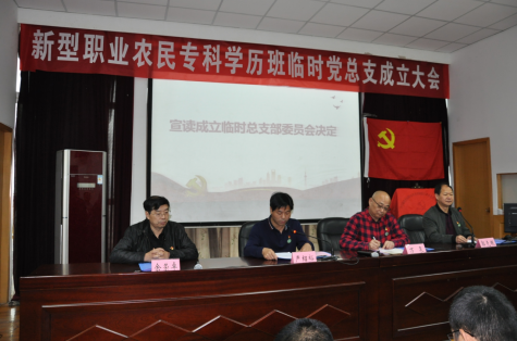 严绍裕副院长宣读成立“中共福建林业职业技术学院新型职业农民专科学历班临时总支部委员会”的决定。