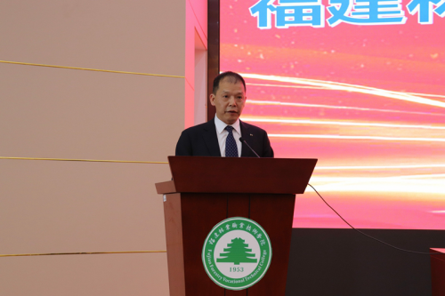 刘文开院长代表福建林业职业技术学院致辞。刘院长指出,省教育厅等部门决定今年职业教育活动周主会场活动在福建林业职业技术学院举行,体现了对学院建设、改革与发展的肯定和关心支持。近年来,学院在省委教育工委、省教育厅的直接领导下,以党的十九大精神和习近平新时代中国特色社会主义思想为指导,秉承“质量立校、人才强校、特色兴校、文化铸校”的办学理念,在治理能力提升、体制机制创新、特色专业建设、职业技能竞赛、技术研发和社会服务等方面都取得了显著的成效,在全省、全国高职高专院校中的地位不断提升,形成了良性的发展循环。学院将始终坚持以立德树人为根本,坚持产教融合、校企合作,坚持工学结合、知行合一,加强技术技能积累,提升人才培养质量,为建设“机制活、产业优、百姓富、生态美”的新福建,提供技术与人才支持。