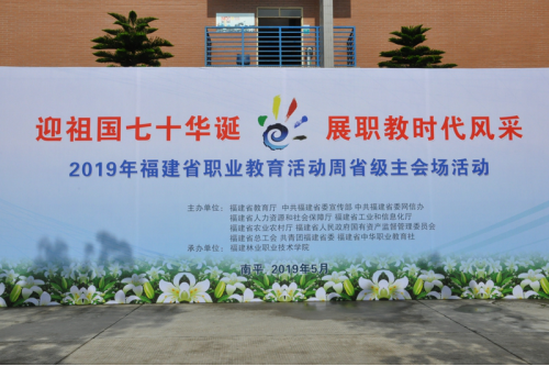 本网讯 为落实全国教育大会精神和《国家职业教育改革实施方案》新要求,营造庆祝中华人民共和国成立70周年的良好氛围,5月9日,2019年福建省职业教育活动周省级主会场活动开幕式在福建林业职业技术学院举行。2019年福建省职教活动周以“迎祖国七十华诞 展职教时代风采”为主题,宣传建国70周年以来福建省职业教育取得的丰硕成果,进一步营造全社会关心支持职业教育的良好氛围。