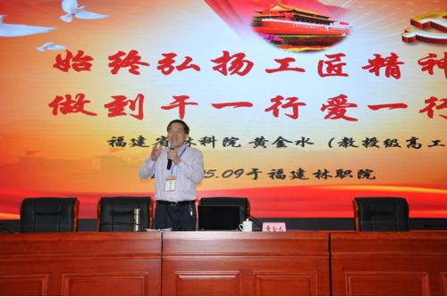 福建林业职业技术学院、闽北职业技术学院、南平职业中专学校、夏道中学、夏道小学等学校师生代表在报告厅听取了全国劳动模范、福建省林科院黄金水教授《始终弘扬工匠精神 做到干一行爱一行》报告会。黄金水教授勉励各位同学,不管上的是什么学校,在学校学什么专业,无论学历高低,只要坚定信心,干一行爱一行,行行都能取得好结果!