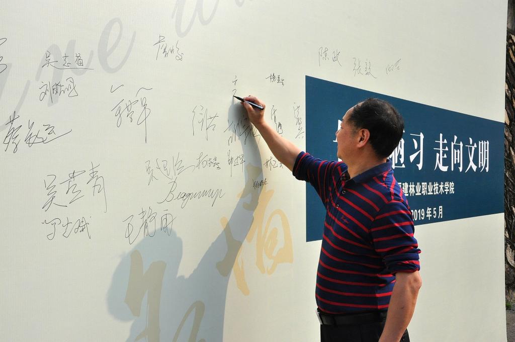上午8:00,迎着初升的朝阳,学院在天麟校区学生活动中心前广场举行纪念“五四”运动100周年宣誓仪式暨“告别陋习 走向文明”签名活动。活动由学院副院长严绍裕主持。全体教职工在“告别陋习 走向文明”签名板上签字留念。全体党员使用手机登陆文明校园“志愿汇”签到。