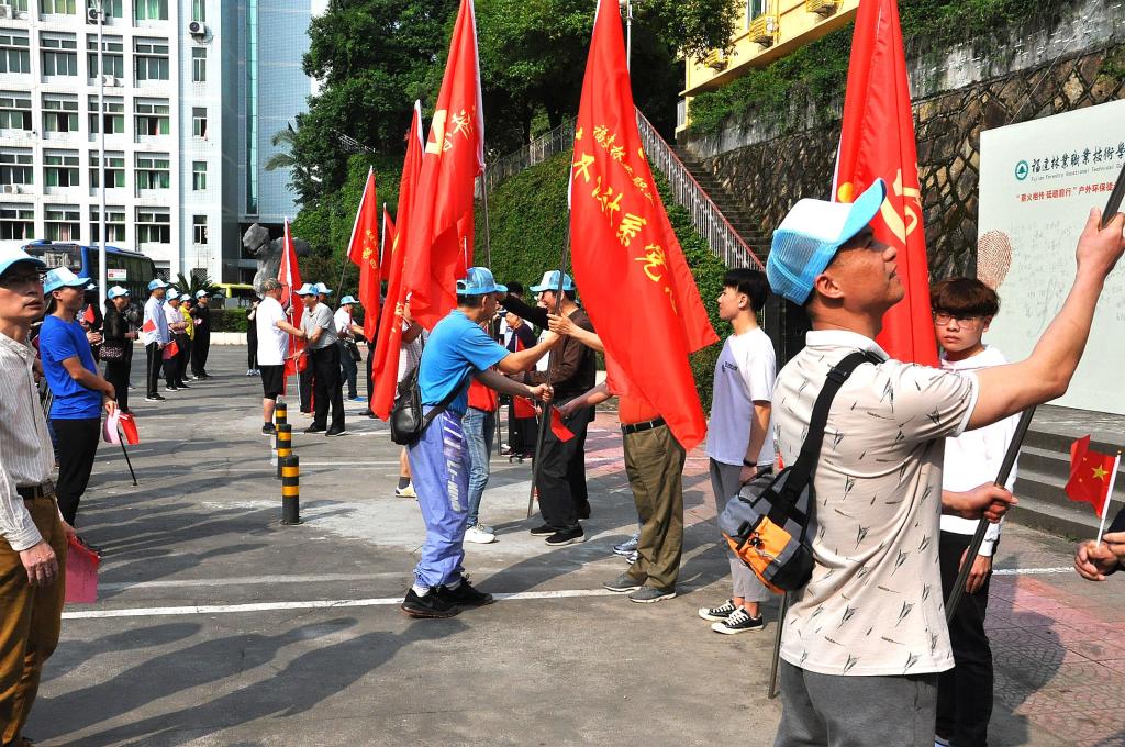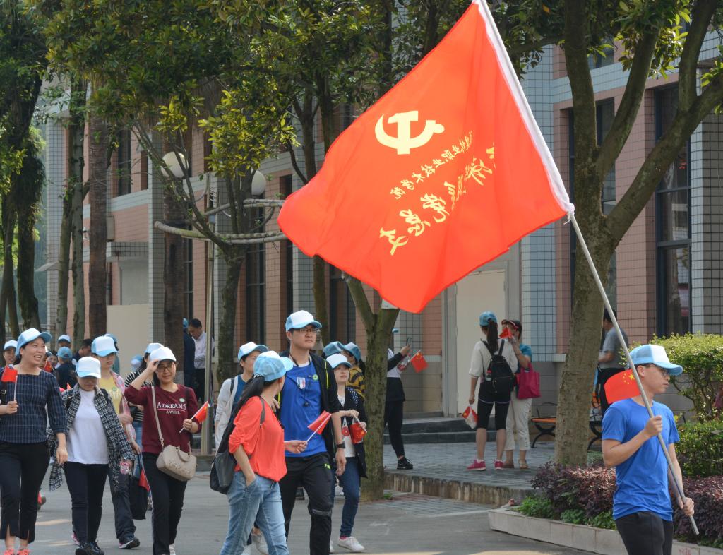 上午9:00,全体教职工以党支部为方阵人手一面鲜红的小国旗,在校旗的引领下,从学院天麟校区学生活动中心前广场出发,途经学院大门、干休所、南平市委、九峰桥、动物园,最后到达学院江南校区,全程12公里。在徒步行途中设有服务站,为老师们提供矿泉水、随队医生保健、校车等服务。一路上,广大教职工精神抖擞、意气风发,呼吸着大自然清新的空气,欣赏着三江六岸的旖旎风光,大家结伴而行,互相帮助,互相鼓励,自觉将废弃物分类装好并置于垃圾分类箱内。在历经三个小时的徒步健行后,全体教职工徒步陆续到达江南校区,并使用手机登陆文明校园“志愿汇”签退。