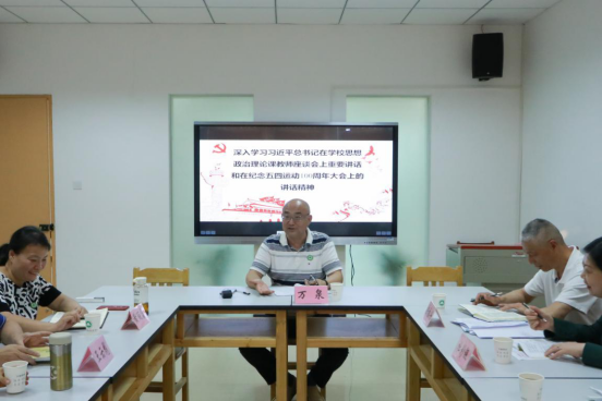 会上,万泉书记带领思政部教师深入学习习近平总书记在学校思想政治理论课教师座谈会上重要讲话和在纪念五四运动100周年大会上的讲话精神,强调首先必须深刻领会 “办好思想政治理论课,最根本的是要全面贯彻党的教育方针,解决好培养什么人、怎样培养人、为谁培养人这个根本问题。”的精神实质,明确办好思想政治理论课是立德树人的关键,指出思想政治理论课教学要结合高职学生的学习特点和成长规律,要不断探索、改革创新,以生动的话语和有效的教育教学方式将科学理论根植于学生的头脑之中。思政课要增强思想性、理论性、亲和力和针对性,要用真理的强大力量引导和教育学生。