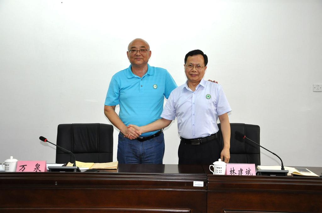 会上,院党委书记万泉宣读了《中共福建省教育厅党组关于林建斌同志任职的通知》(闽教党〔2019〕43号):任命林建斌同志为中共福建林业职业技术学院委员会委员、中共福建林业职业技术学院纪律检查委员会书记。万泉书记介绍了林建斌同志的个人基本情况,并亲自为他戴上了学院的校徽。