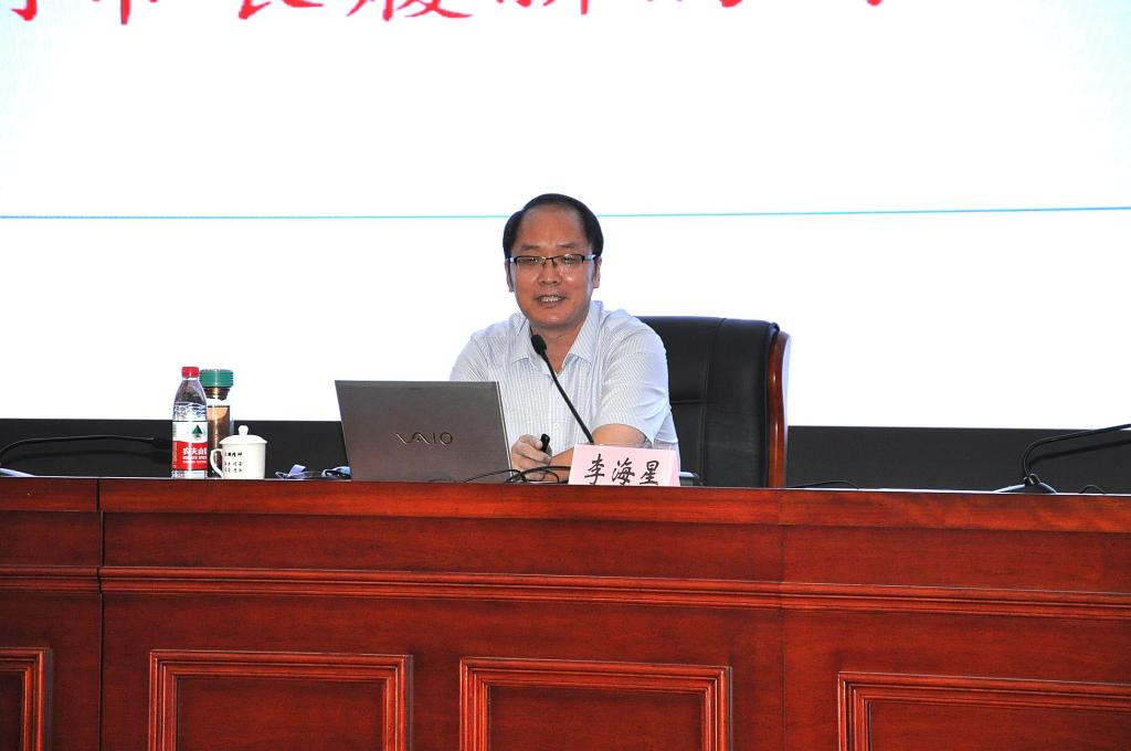 院党委书记万泉主持天麟大讲堂并在认真聆听李海星教授的报告后强调,李教授的专题报告非常精彩,全体师生党员要坚持学思践悟、融会贯通,进一步兴起学习贯彻习近平新时代中国特色社会主义思想的新高潮,更好地以习近平新时代中国特色社会主义思想武装头脑、指导实践、推动工作。
