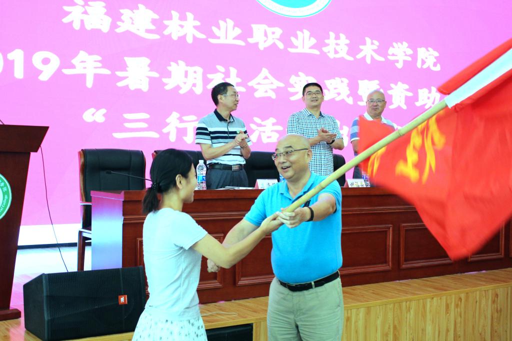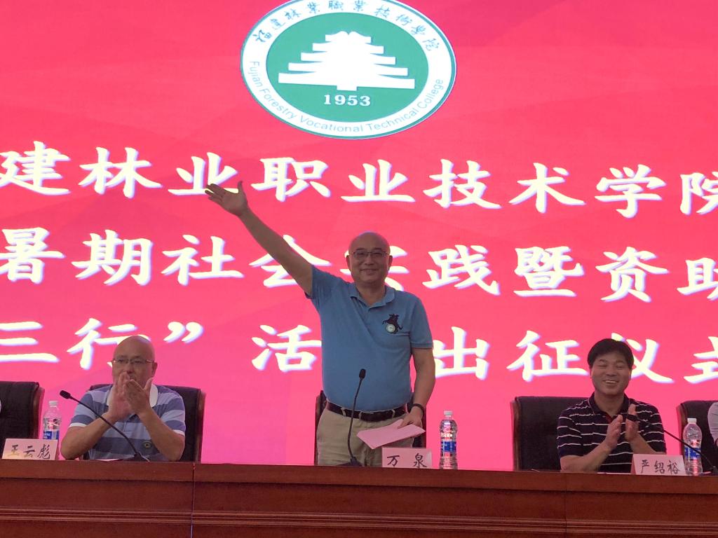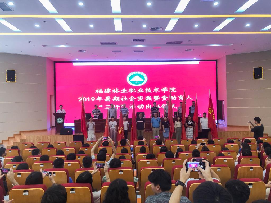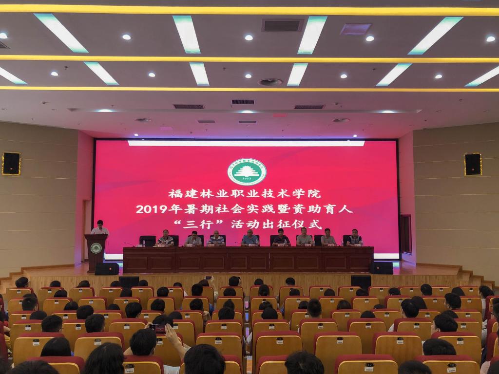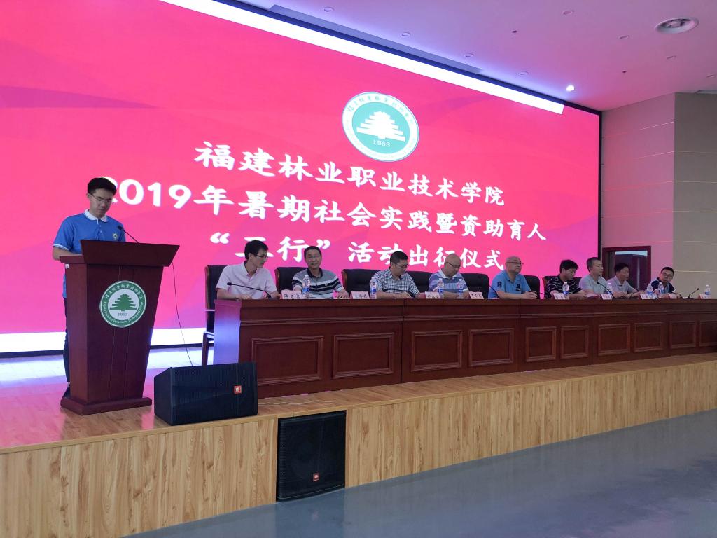 本网讯 2019年7月2日上午,福建林业职业技术学院2019年暑期社会实践暨资助育人“三行”活动出征仪式在江南校区学术报告厅隆重举行。院党委书记万泉,副院长严绍裕,学生处副处长陈友益及各系学工组组长、团总支书记应邀到会。2019年暑期社会实践团成员及指导老师约100人参会。仪式由陈友益副处长主持。