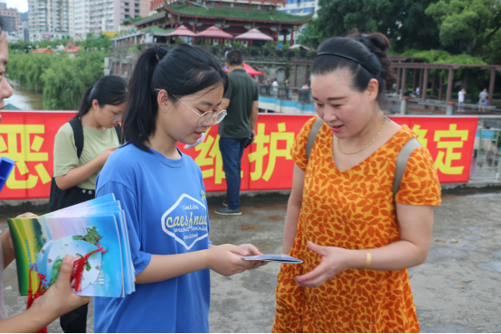 7月6日早上,福建林业职业技术学院交通工程系“河小禹”志愿服务队成员来到百姓河长南平工作站领取宣传物料。暑期社会实践小分队拿着保护生态文明的宣传册、书签等物料,进入了创世纪社区、南平市第一医院、九峰桥及江滨公园,为市民讲解关于环境美化、垃圾分类、河流保护的相关知识,呼吁市民保护生态文明。