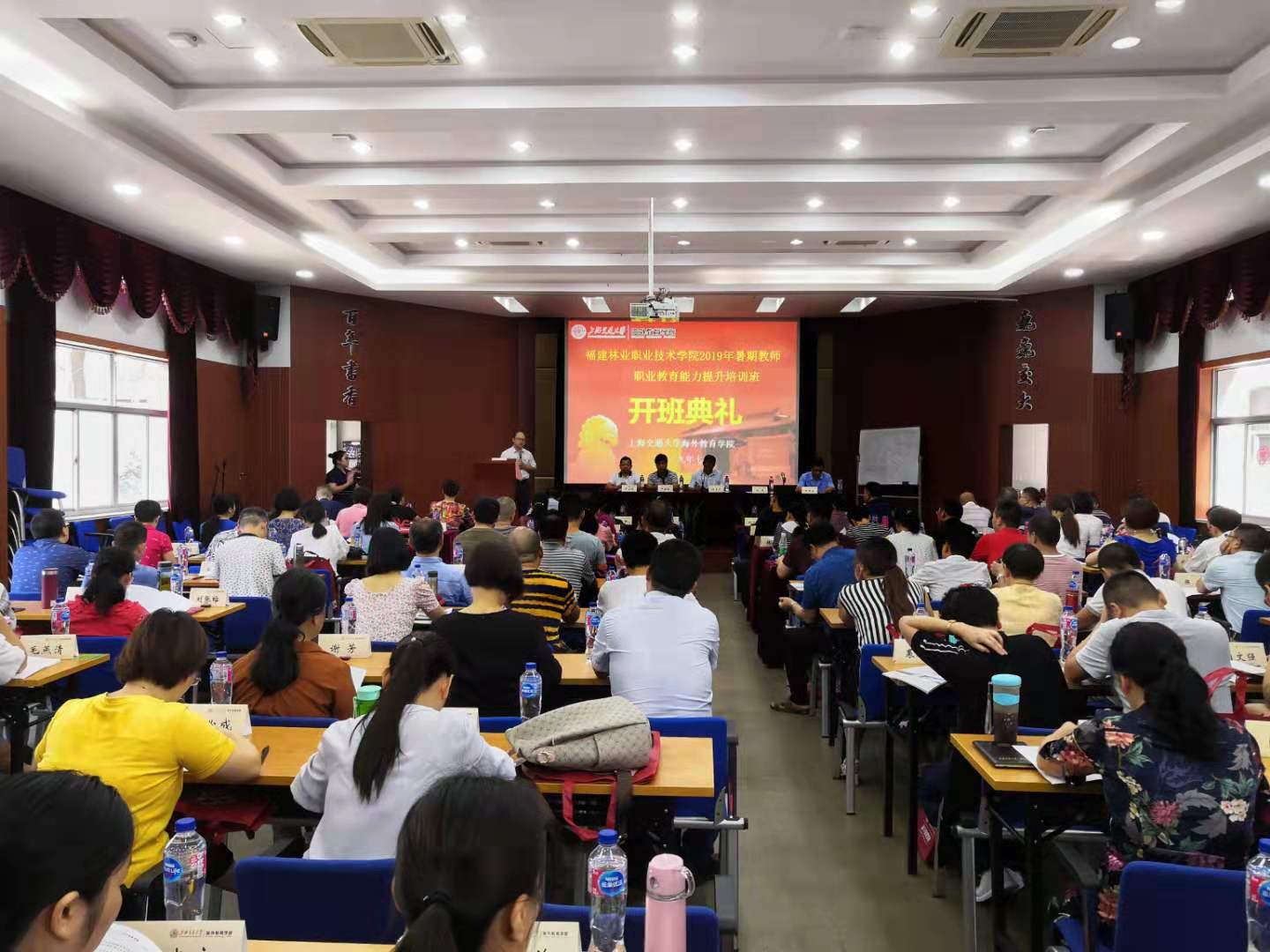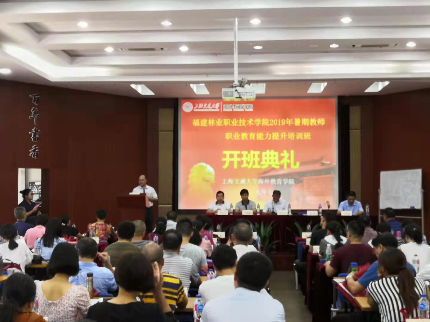 本网讯 2019年7月25日上午,我院2019年暑期教师职业教育能力提升培训班在上海交通大学张元济讲堂开班。我院副高级以上职称教师、教学管理科科长、教研室主任、副科级以上教学管理干部、系部教学干事、正科级以上干部等共计95人参加了本期培训班的学习培训。