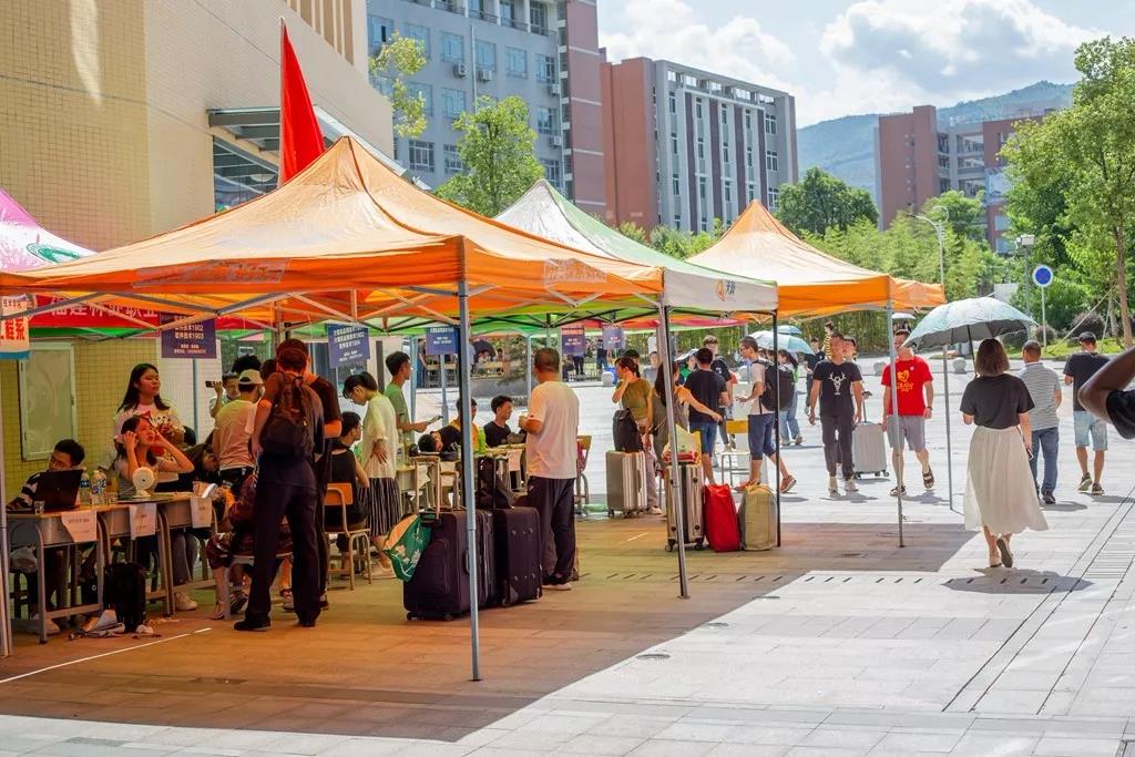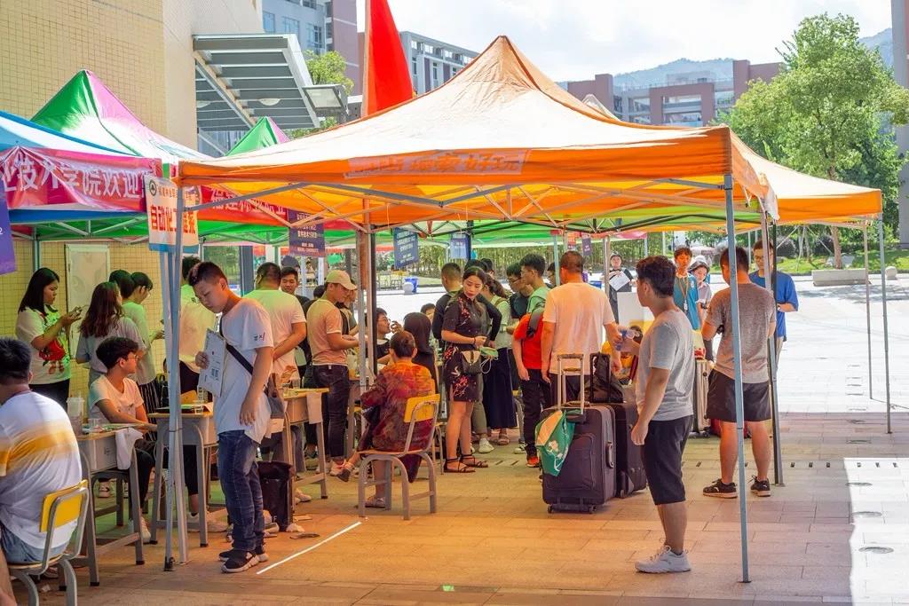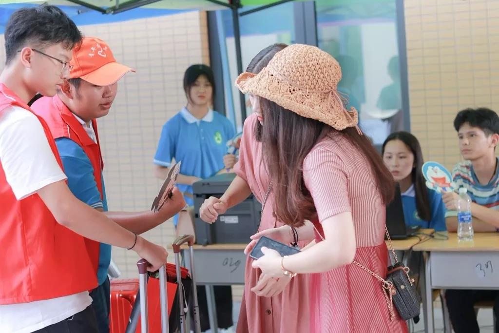 “同学你好,欢迎来到林职院”“宿舍在这边,我带你过去”“叔叔阿姨,我来帮你们提行李吧”......迎新现场随处可见,身着志愿者统一服装和各系系服的学生志愿者在前前后后地为迎新忙碌着。