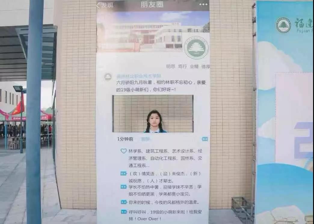 开展“我与祖国共成长,晒开学第一照”活动,在现场设置巨型车票、梦想墙,真人版福建林职院朋友圈,吸引广大新生和家长前来拍下开学第一照,镜头下的他们正式成为了新一代“林职人”。