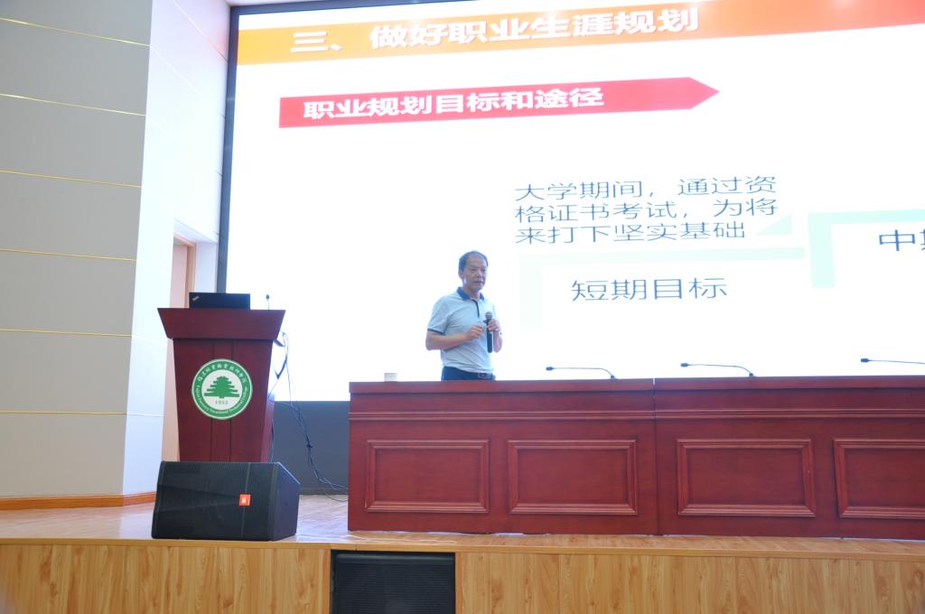 本网讯 为进一步贯彻《教育部关于加强新时代高校“形势与政策”课建设的若干意见》和中共中央办公厅、国务院办公厅印发的《关于深化新时代学校思想政治理论课改革创新的若干意见》,落实领导干部为大学生讲思政课的制度,9月19日,院党委副书记、院长刘文开教授在江南校区学术报告厅为2019级学生上了以“奋斗青春,不负芳华”为题的第一堂思政课。来自林学系和园林系的全体大一新生及思政部全体教师聆听了此次课程。