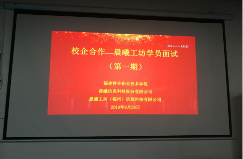 本网讯 2019年9月24日下午,在我院交通工程系实训基地、校企合作中心内举办了一场企业招聘“校工坊”员工的活动,交通工程系“引企入校”企业福建晨曦信息科技股份有限公司为校工坊(晨曦工坊)选拔了第一批学员(员工)。本次企业招聘“校工坊”员工活动的举办,标志着我院交通工程系首个以企业命名的专业班级“晨曦科技班”正式启动。