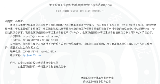 据悉,全国职业院校林草类重点专业是根据《国家林业和草原局办公室关于开展全国职业院校林草类重点专业遴选工作的通知》(办人字〔2018〕205号)要求,经学院申报、福建省教育厅审核推荐,全国职业院校林草类重点专业遴选工作领导小组组织进行申报专业的资格审查、专家网络评审、专家会议综合评审后遴选而出。