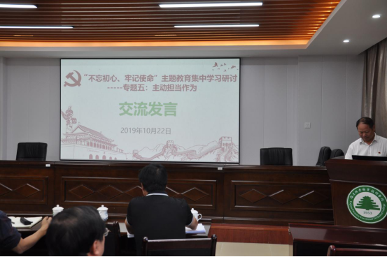 本网讯 10月22日下午,福建林业职业技术学院在江南校区办公楼六楼会议室开展“不忘初心、牢记使命”主题教育“主动担当作为”专题党课学习。学院副院长严绍裕上了题为“牢记初心使命、勇于担当作为,扎实推进学院文明校园建设”的专题党课。在家领导班子成员、副科级以上干部及全体省级文明校园创建联络员参加了党课学习。会议由院党委副书记、院长刘文开主持。