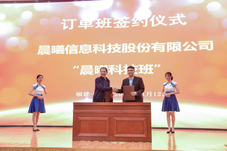 随后,刘文开理事长分别与宁德时代新能源科技有限公司、中福海峡(平潭)发展股份有限公司、北京犀牛数字互动科技有限公司、晨曦信息科技股份有限公司、福建省南平市广联广告有限公司、泉州市宏兴代理记账有限公司代表进行“宁德时代班”“中福班”“犀牛班”“晨曦科技班”“广联班”“宏兴班”订单班签约仪式。