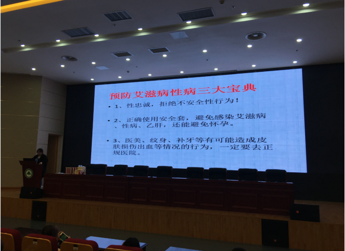紧接着,方芳讲师从为何学生易感染艾滋病、福建省疾控中心开展相关工作、认识艾滋病三个方面来帮学院学生认识艾滋病、预防艾滋病。