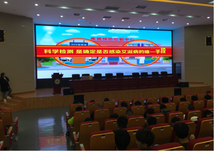 健康教育讲座上,方芳讲师播放了福建省疾病预防控制中心制作的“远离艾滋 青春无悔”的健康教育片。