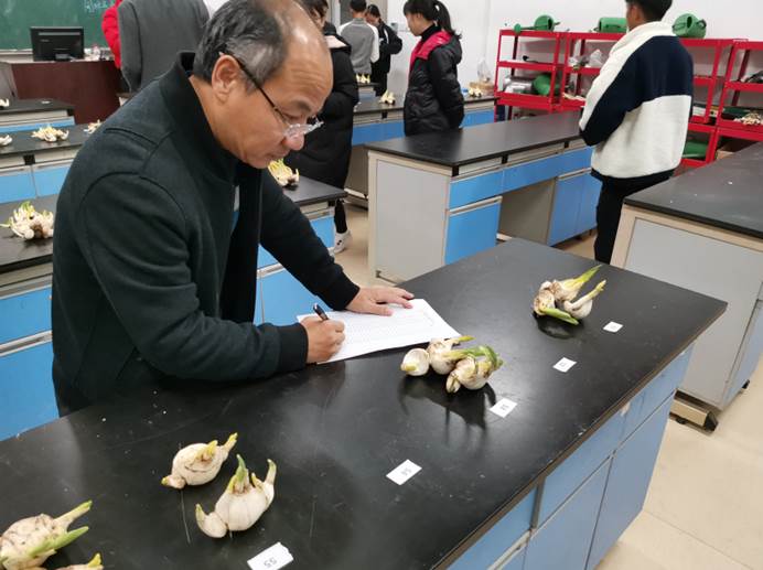 本网讯 为深入推进技能文化进宿舍,弘扬专业专注、精准精美的工匠精神,培养广大青年大学生勇于担当、主动作为的职业精神,12月21日下午园林系在实训一105举办水仙雕刻大赛。园林系主任黄华明、系教学管理科科长陈剑峰、系学生科科长吴旻,黄梓良副教授,辅导员吴锦鸿、孙钰出席了比赛并担任评委。