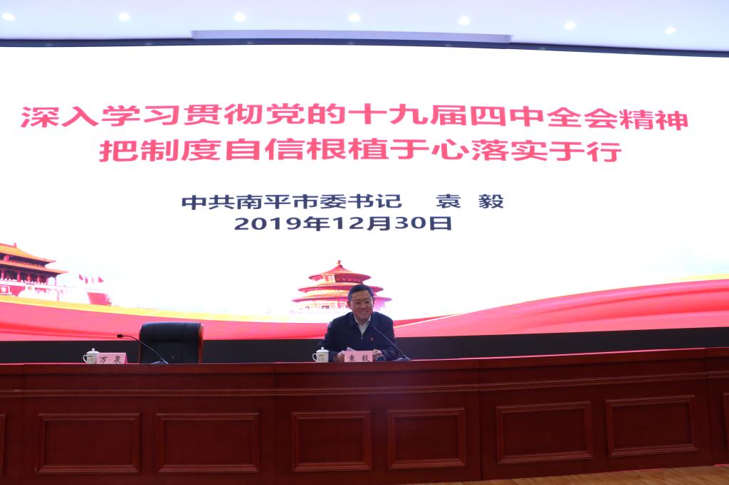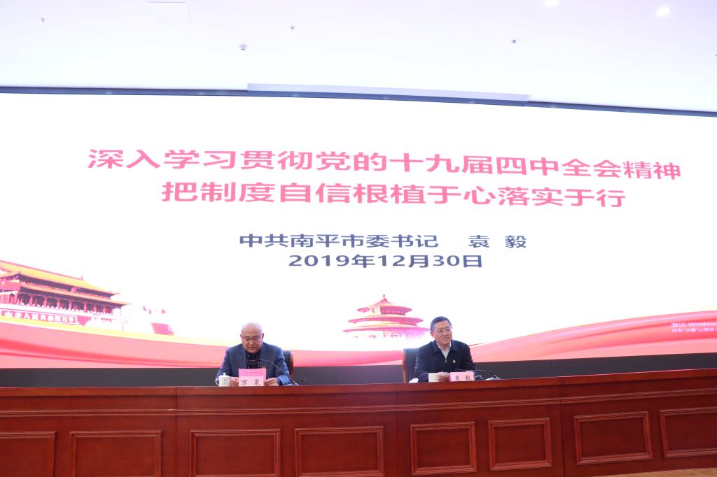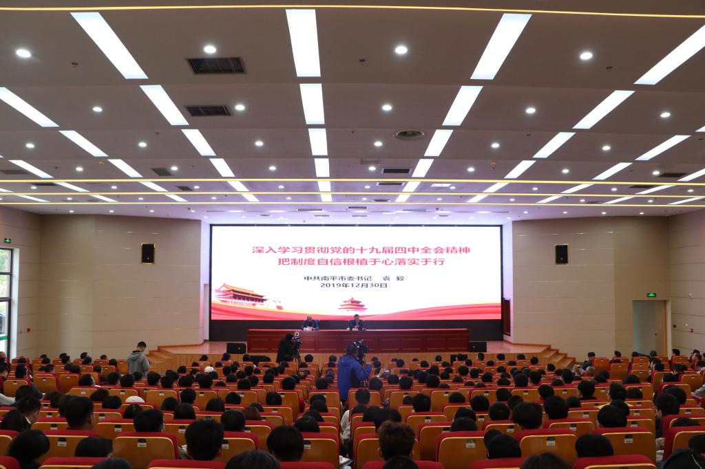 本网讯 在学院深入学习贯彻党的十九届四中全会精神,全面总结2019年工作展望2020年工作之际,为进一步贯彻落实中央关于领导干部上讲台开展思想政治教育的要求,激励学院师生凝心聚力、加强作为天麟弟子的使命和担当,12月30日,学院“天麟大讲堂”特邀南平市委书记袁毅同志莅临我院宣讲习近平新时代中国特色社会主义思想和党的十九届四中全会精神,为2019年学院“天麟大讲堂”收官划上圆满的句号。