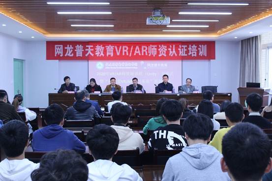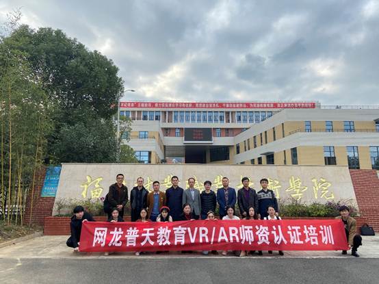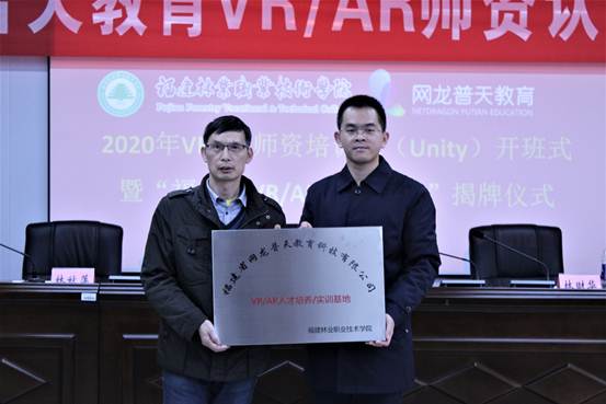 本网讯 2020年1月5日下午, 2020年VR/AR师资培训班暨“福建省VR/AR培训基地”揭牌仪式在我院举行。出席仪式的有网龙普天教育科技有限公司副总经理林财华、销售总监谢曦、教学经理林秋萍,福建林业职业技术学院副院长谢金生、自动化工程系副主任华建祥及来自全省中高职院校的参训学员。仪式由华建祥副主任主持。