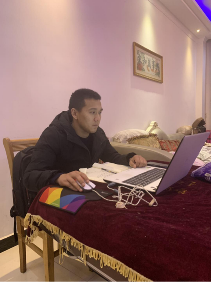 建筑工程系室内设计1501(五)班辅导员廖士喜老师身处疫情最严重的武汉地区,在积极配合政府做好安全防护隔离措施的同时,仍时刻牵挂着他所带班级学生,每天都通过线上形式与班级学生保持密切联系,加强疫情防控知识的普及教育,始终关心关注同学们的疫情防控情况,用爱心和勇气鼓舞着同学们正确面对疫情,将希望和力量、决心与信心传递给每位同学。