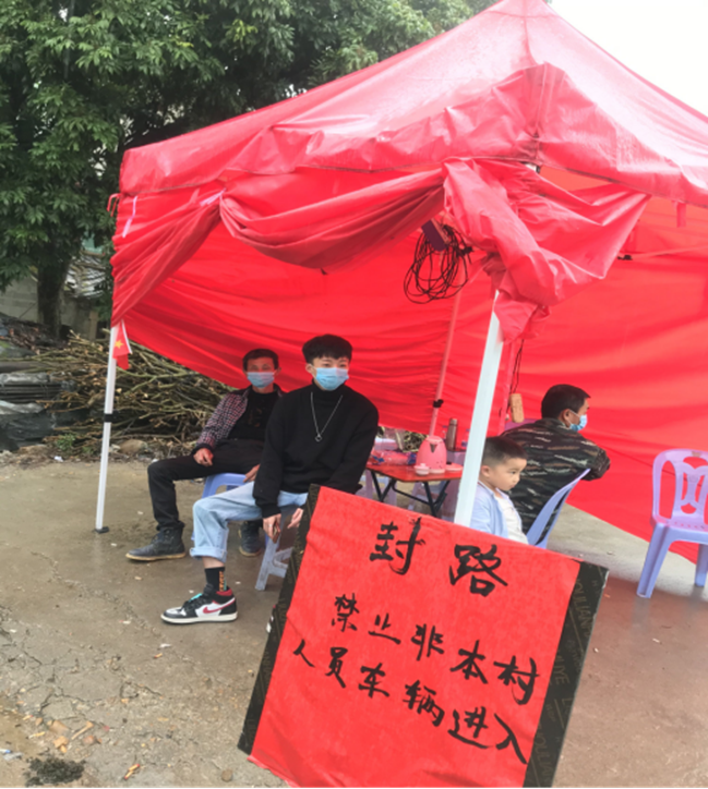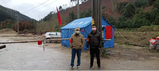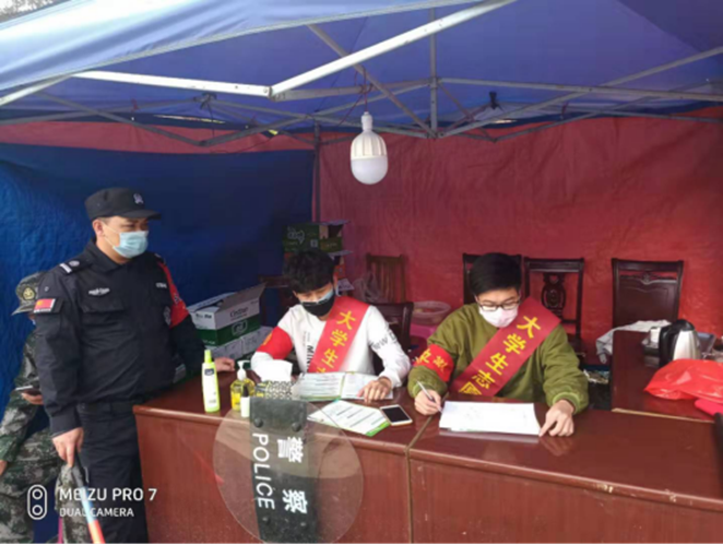 学生志愿者武凌颖、王炳辉、罗漳彬、王汉强、罗煌璋、林亿权、张宇宏、郑岳丰、周胜龙等在疫情防控关键时刻勇于担当,挺身而出,主动请缨报名参加家乡疫情防控工作,在所在地出入口设卡点值班协助开展体温检测、访问登记、车辆排查、劝返聚集人员、张贴防疫宣传标语等防控基础工作。用实际行动响应号召,为早日打赢疫情防控阻击战贡献青春力量。