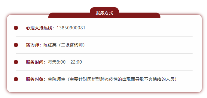 据悉,为让学生度过一个平安、温馨的假期,学院高度重视,通过微信、校园网发布疫情防控指南,增强广大学生防范意识,让学生及时掌握学院的疫情防控工作措施。此外,疫情防控期间,学院采取多项举措,先后开通疫情专项心理热线、启动疫情防控期间学生临时困难补助等工作,始终坚持抗疫与关爱并举、防疫与育人结合,确保党的政策在防疫的关键时刻发挥更大作用。