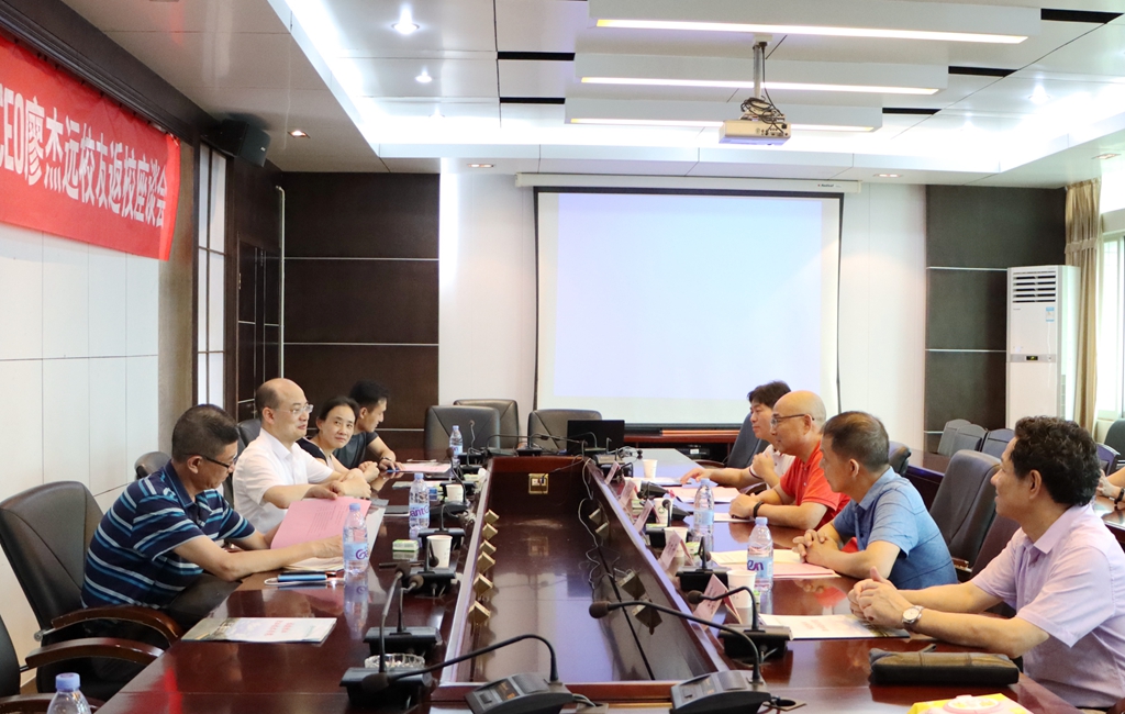 本网讯 7月10日下午,我校采运8823班杰出校友,微医集团董事长兼CEO廖杰远一行重返母校参观考察。院党委书记万泉、院长刘文开、院党委副书记严绍裕、党政办公室主任廖世建、经济管理系主任蔡敏等领导陪同校友参观校园,并与校友们进行了亲切座谈。
